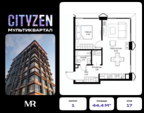 Продается 1-комнатная квартира от застройщика в жилом мультиквартале CITYZEN на 17-м этаже в корпусе #5 урбан-блока PARUS. Общая площадь лота составляет 44.40 м²