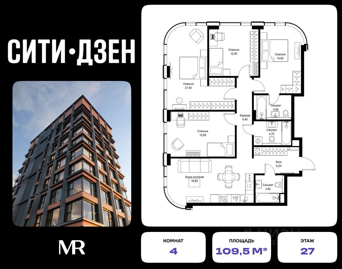 Продается 4-комнатная квартира от застройщика в жилом мультиквартале СИТИДЗЕН на 27-м этаже в корпусе #1. Общая площадь лота составляет 109.50 м²
