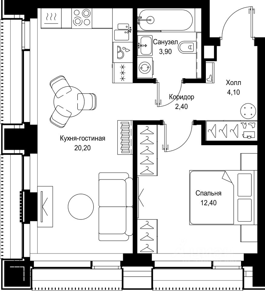 Продается 1-комнатная квартира от застройщика в жилом мультиквартале CITYZEN на 29-м этаже в корпусе #2 урбан-блока PARUS. Общая площадь лота составляет 43 м²