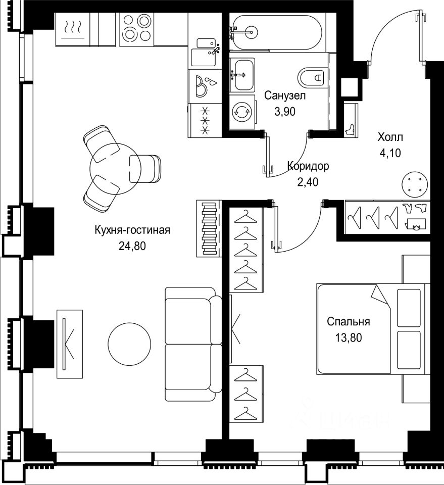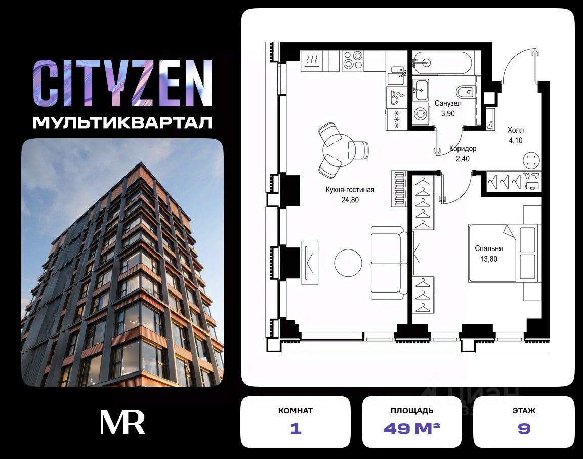 Продается 1-комнатная квартира от застройщика в жилом мультиквартале CITYZEN на 9-м этаже в корпусе #2 урбан-блока PARUS. Общая площадь лота составляет 49 м²