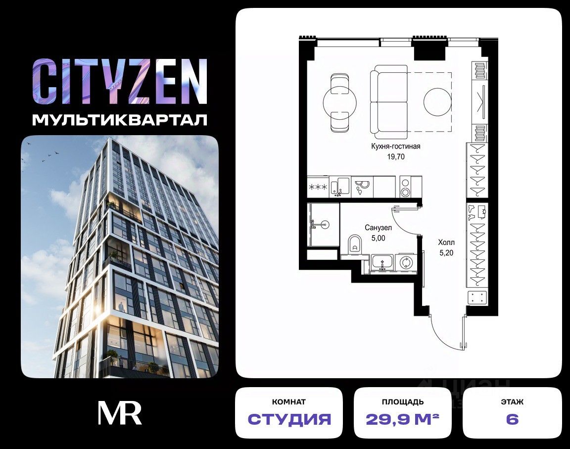 Продается студия от застройщика в жилом мультиквартале CITYZEN на 6-м этаже в корпусе #2 урбан-блока PARUS. Общая площадь лота составляет 29.90 м²