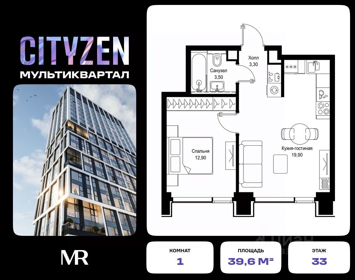 Продается 1-комнатная квартира от застройщика в жилом мультиквартале CITYZEN на 33-м этаже в корпусе #2 урбан-блока PARUS. Общая площадь лота составляет 39.60 м²