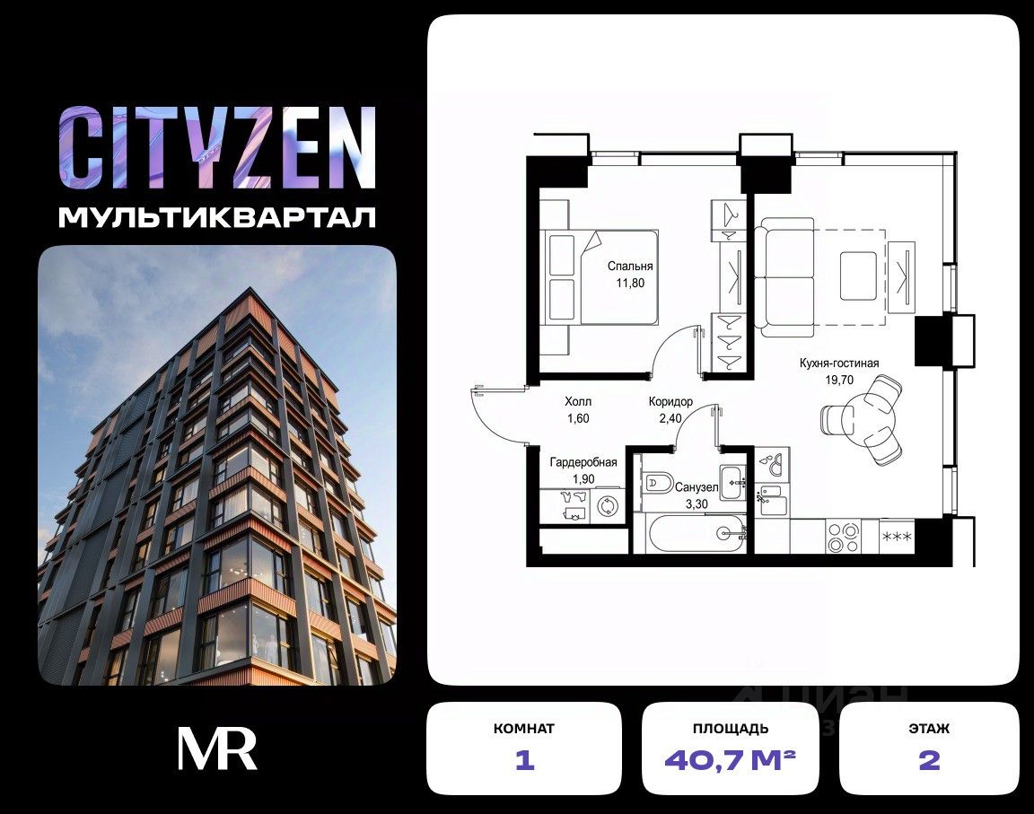 Продается 1-комнатная квартира от застройщика в жилом мультиквартале CITYZEN на 2-м этаже в корпусе #3 урбан-блока PARUS. Общая площадь лота составляет 40.70 м²