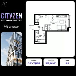 Продается студия от застройщика в жилом мультиквартале CITYZEN на 22-м этаже в корпусе #3 урбан-блока PARUS. Общая площадь лота составляет 25.80 м²