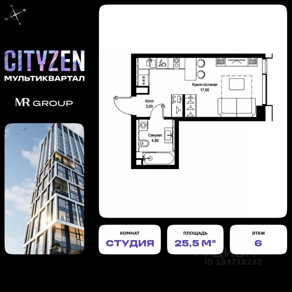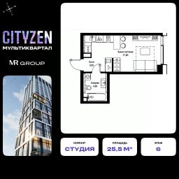 Продается студия от застройщика в жилом мультиквартале CITYZEN на 6-м этаже в корпусе #3 урбан-блока PARUS. Общая площадь лота составляет 25.50 м²