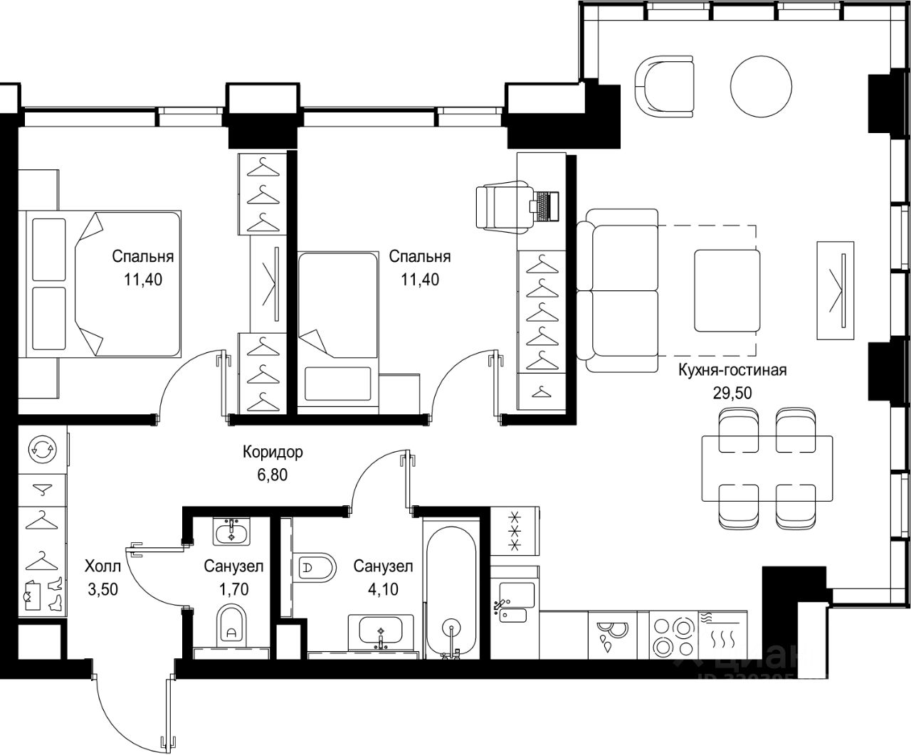 Продается 2-комнатная квартира от застройщика в жилом мультиквартале CITYZEN на 23-м этаже в корпусе #3 урбан-блока PARUS. Общая площадь лота составляет 68.40 м²