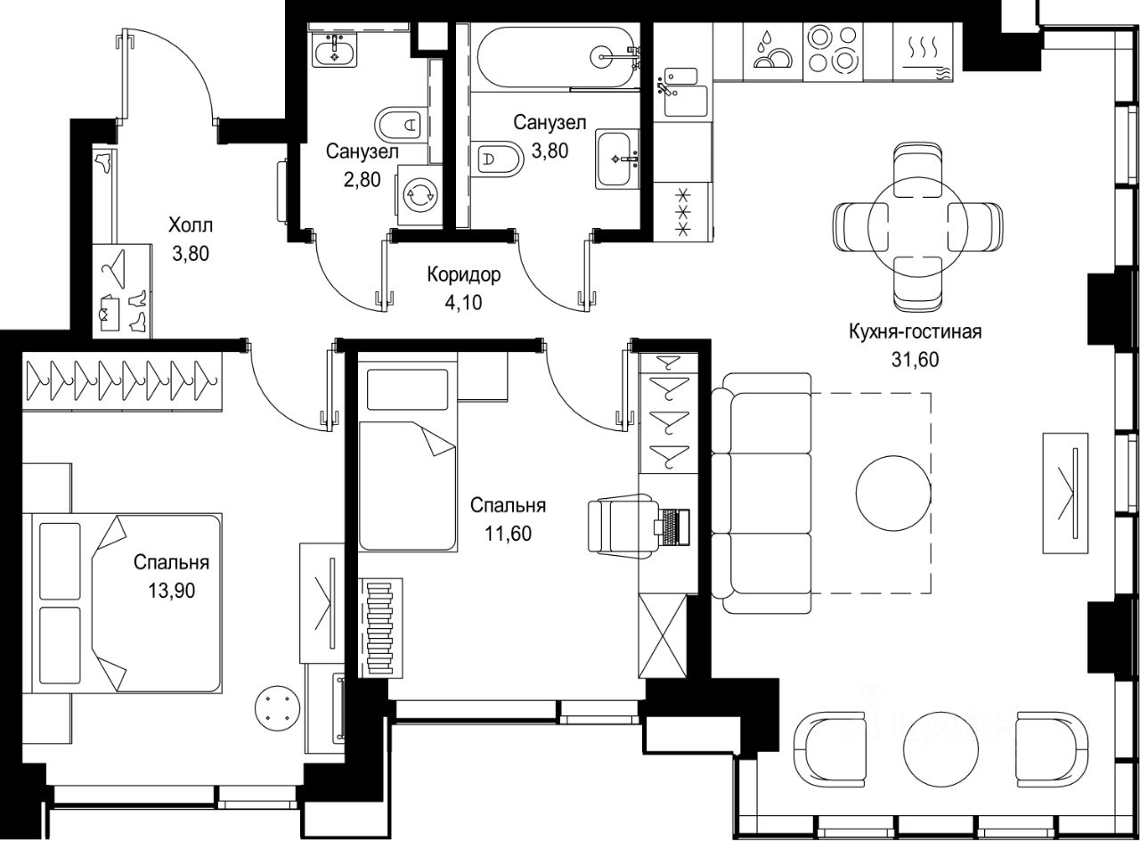 Продается 2-комнатная квартира от застройщика в жилом мультиквартале CITYZEN на 27-м этаже в корпусе #3 урбан-блока PARUS. Общая площадь лота составляет 71.60 м²