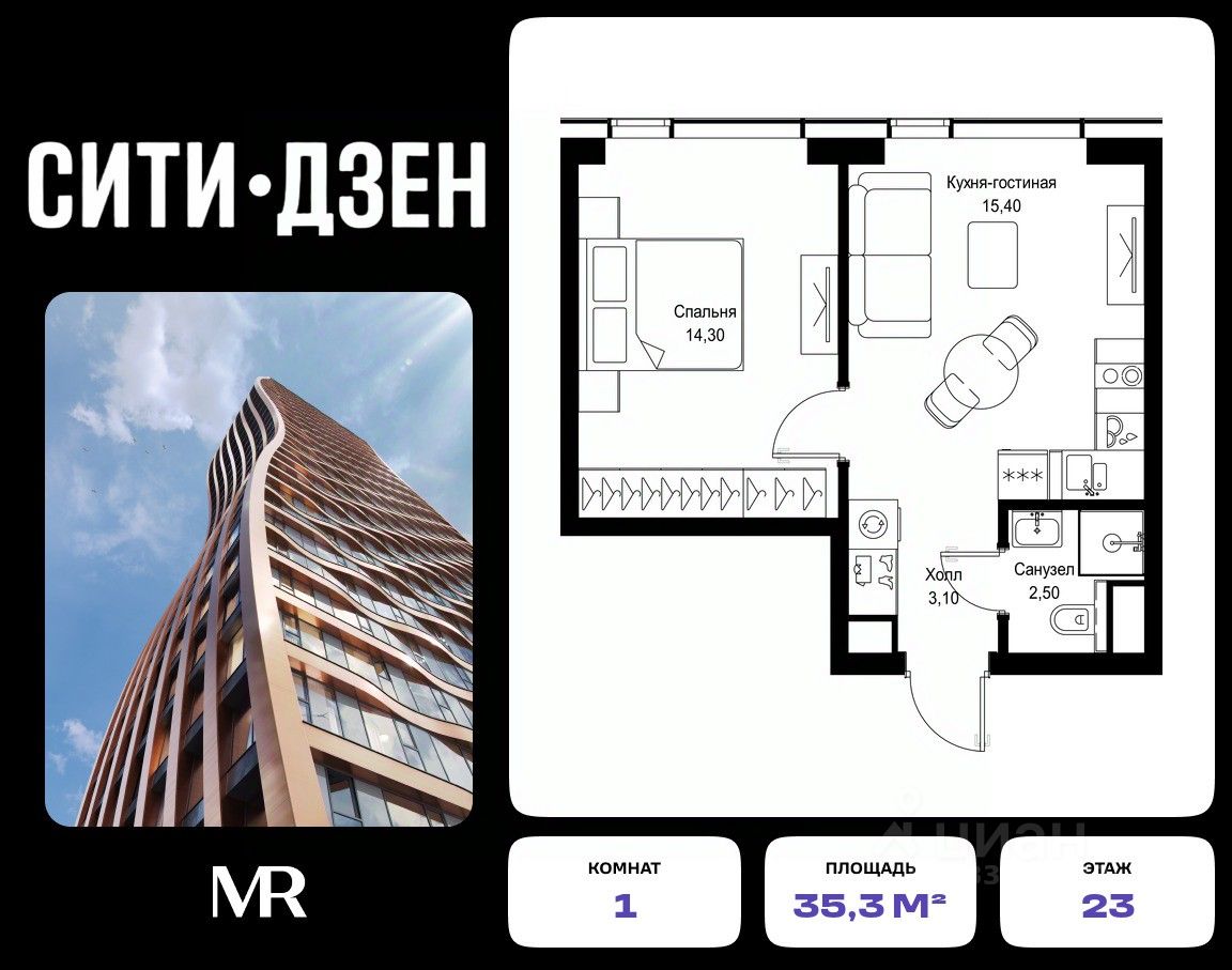 Продается 1-комнатная квартира от застройщика в жилом мультиквартале СИТИДЗЕН на 23-м этаже в корпусе #6. Общая площадь лота составляет 35.30 м²