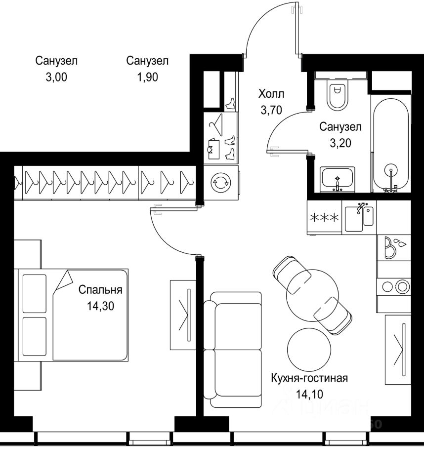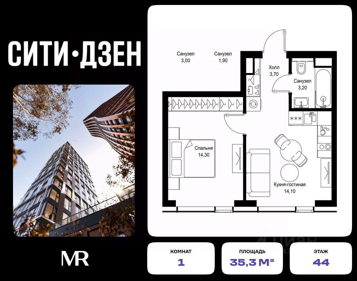 Продается 1-комнатная квартира от застройщика в жилом мультиквартале СИТИДЗЕН на 44-м этаже в корпусе #6. Общая площадь лота составляет 35.30 м²