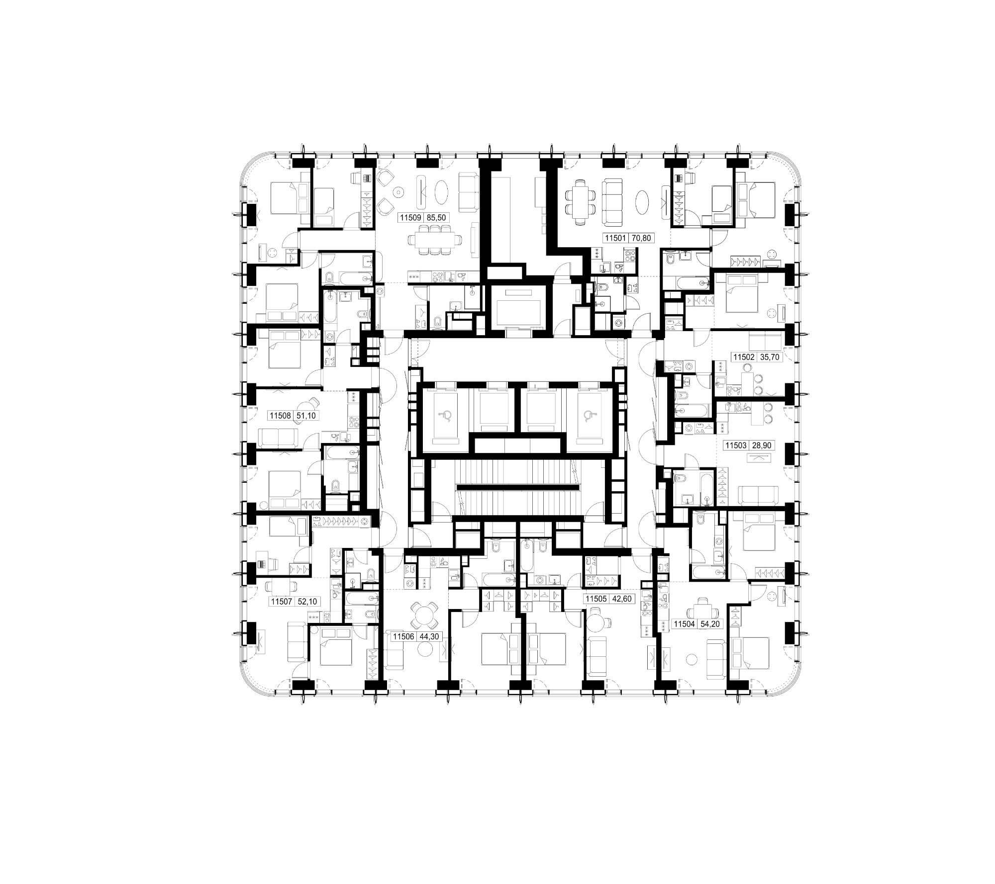 Продаётся 3-к квартира общей площадью 85.50 м² без отделки в ЖК City Вау, квартале Pacific, на 15-м этаже 59 этажного дома.