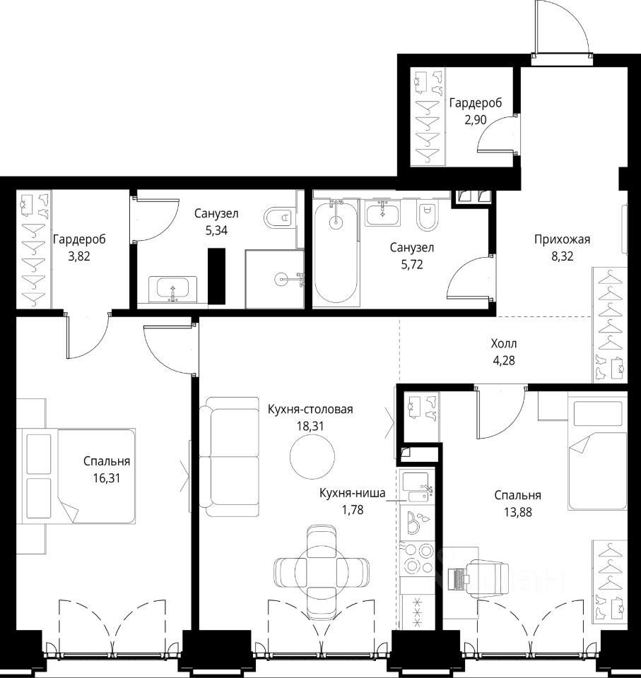 - Кладовыми помещениями.