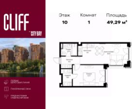 Продаётся 1-комнатная квартира общей площадью 49.29 м² с предчистовой отделкой в ЖК City Вау, квартале Cliff, на 10-м этаже 15 этажного дома.