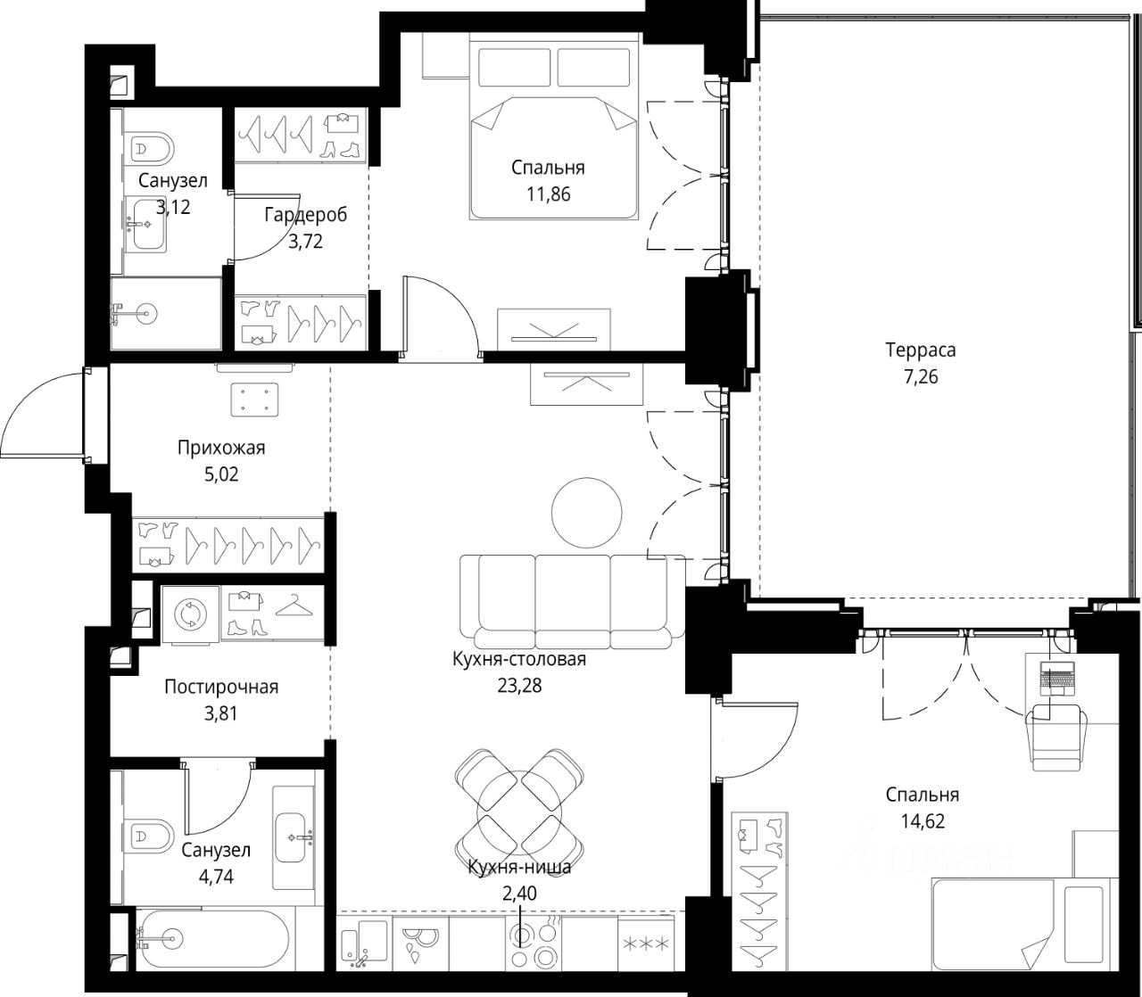 В каждом здании комбинируется максимальное количество и разнообразие форматов квартир: от видовых квартир с зелеными террасами и лоджиями до квартир малого формата.