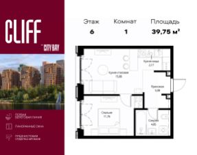 Продаётся 1-комнатная квартира общей площадью 39.75 м² с предчистовой отделкой в ЖК City Вау, квартале Cliff, на 6-м этаже 15 этажного дома.