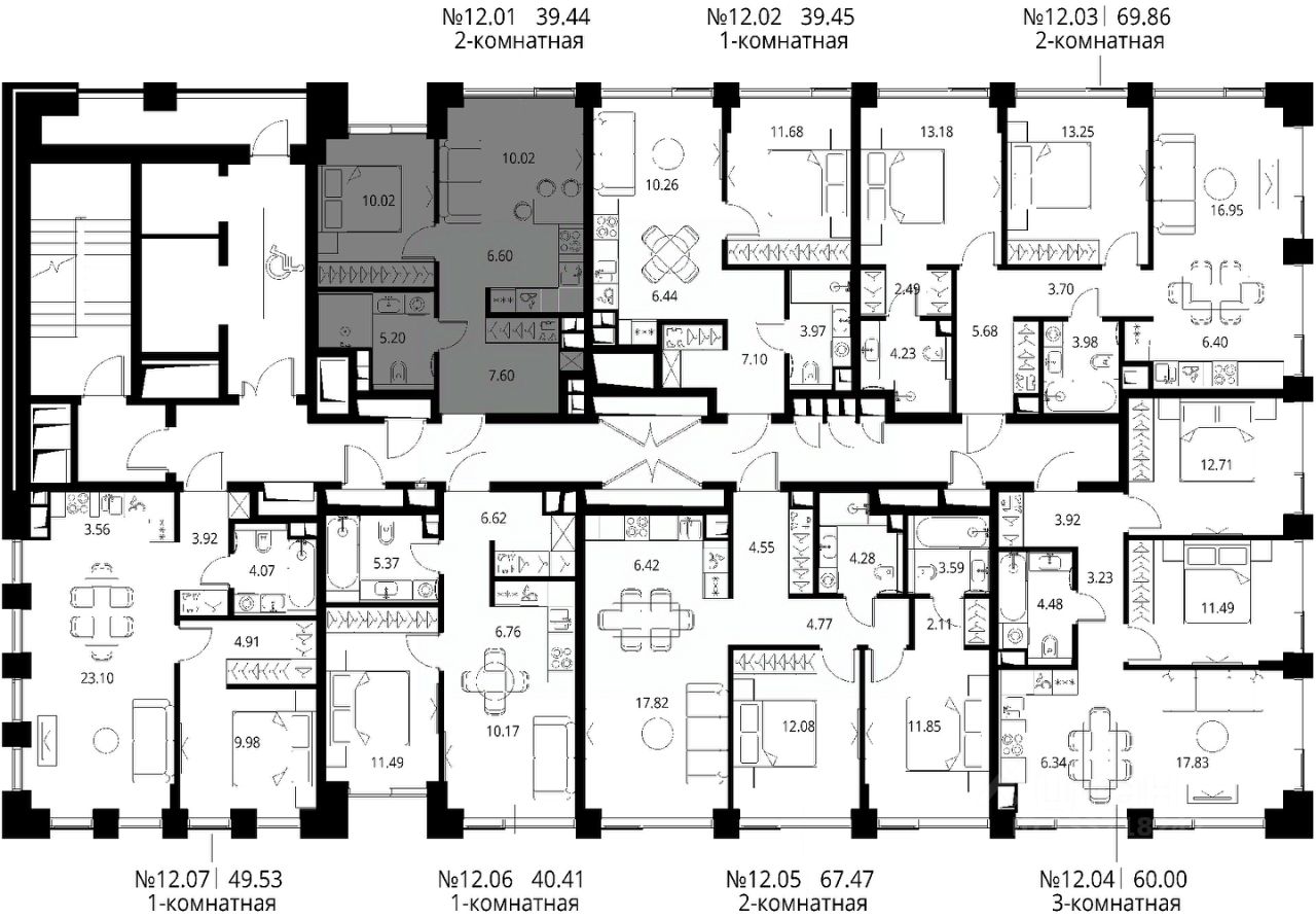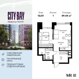 Продаётся 1-к квартира общей площадью 39.44 м² с предчистовой отделкой в ЖК City Вау, квартале North, на 12-м этаже 21 этажного дома.