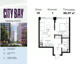 Продаётся 1-комнатная квартира общей площадью 38.37 м² с предчистовой отделкой в ЖК City Вау, квартале North, на 19-м этаже 21 этажного дома.