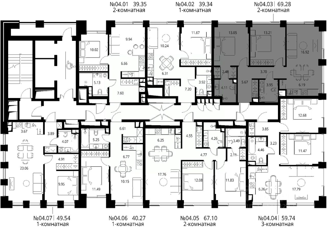 Продаётся 2-к квартира общей площадью 69.28 м² с предчистовой отделкой в ЖК City Вау, квартале North, на 4-м этаже 21 этажного дома.