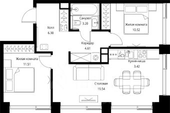Продаётся 2-комнатная квартира общей площадью 59.10 м² с предчистовой отделкой в ЖК City Вау, квартале North, на 21-м этаже 27 этажного дома.