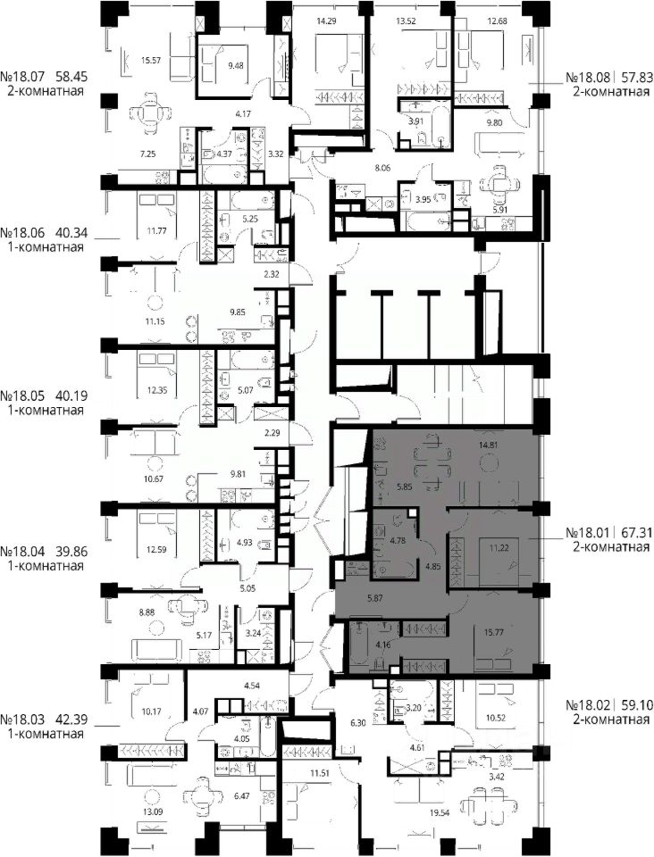 Продаётся 2-комнатная квартира общей площадью 67.31 м² с предчистовой отделкой в ЖК Сити Бэй, квартале Норс, на 18-м этаже 27 этажного дома.