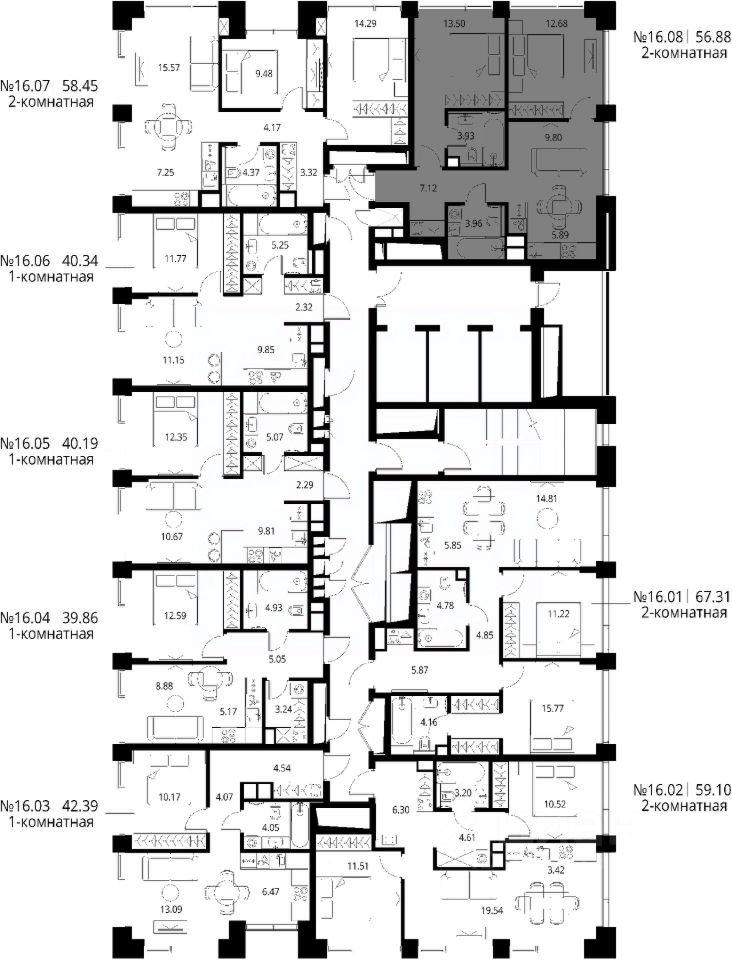 Продаётся 2-к квартира общей площадью 56.88 м² с предчистовой отделкой в ЖК City Вау, квартале North, на 16-м этаже 27 этажного дома.