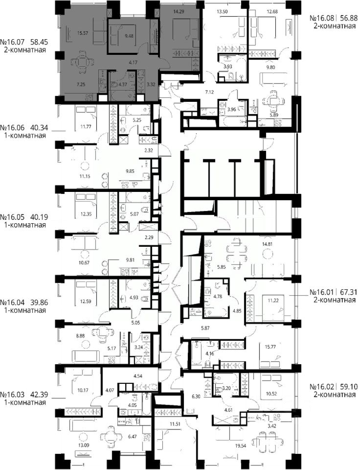 Продаётся 2-комнатная квартира общей площадью 58.45 м² с предчистовой отделкой в ЖК Сити Бэй, квартале Норс, на 16-м этаже 27 этажного дома.