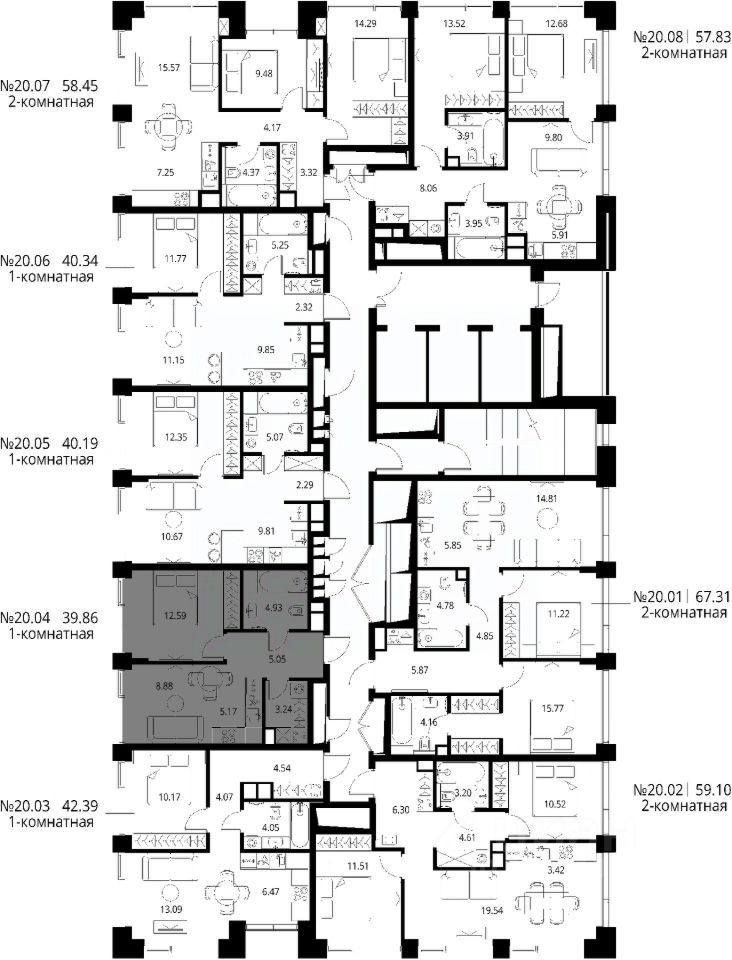 Продаётся 1-комнатная квартира общей площадью 39.86 м² с предчистовой отделкой в ЖК Сити Бэй, квартале North, на 20-м этаже 27 этажного дома.