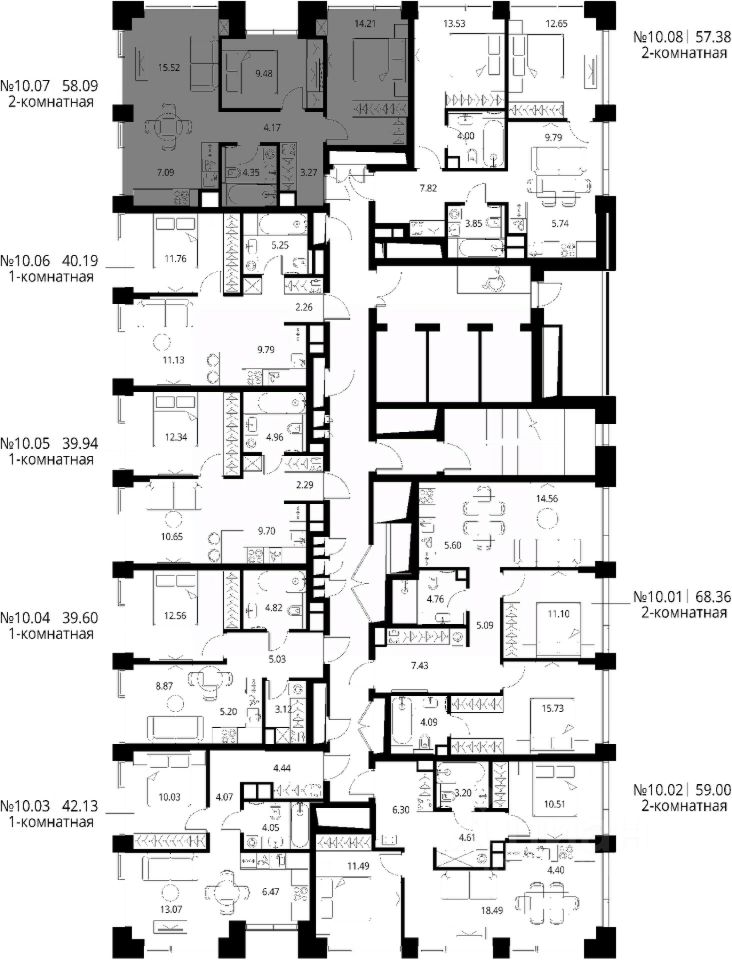 Продаётся 2-комнатная квартира общей площадью 58.09 м² с предчистовой отделкой в ЖК Сити Бэй, квартале Норс, на 10-м этаже 27 этажного дома.
