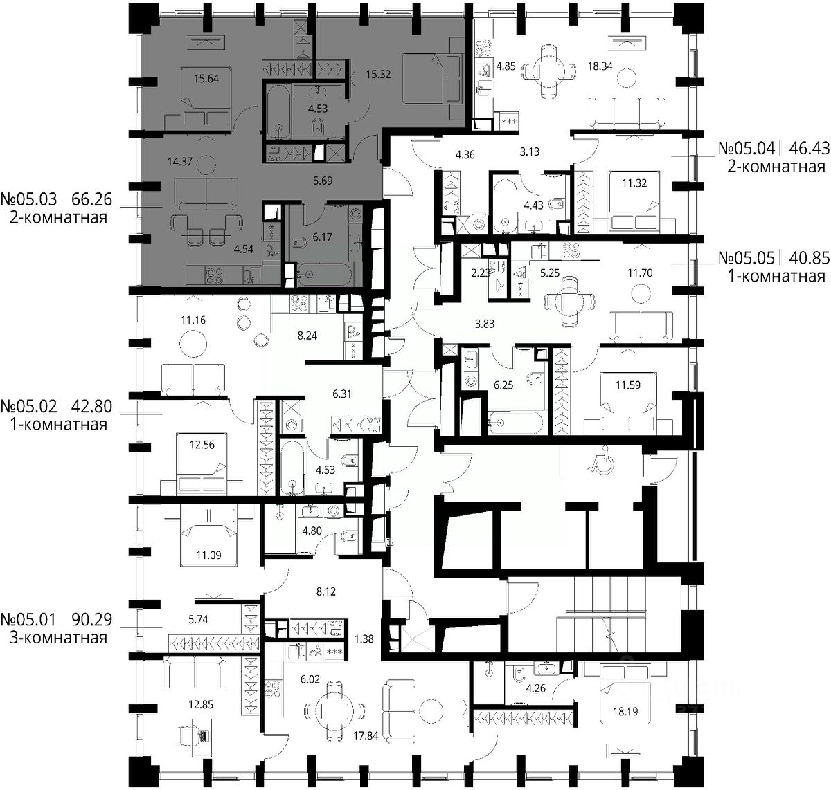 Продаётся 2-комнатная квартира общей площадью 66.26 м² с предчистовой отделкой в ЖК Сити Бэй, квартале Норс, на 5-м этаже 19 этажного дома.