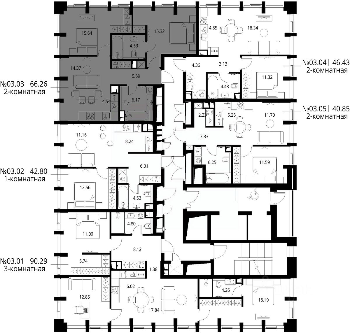 Продаётся 2-комнатная квартира общей площадью 66.26 м² с предчистовой отделкой в ЖК Сити Бэй, квартале Норс, на 3-м этаже 19 этажного дома.
