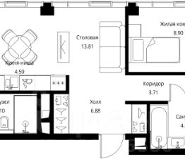 Продаётся 3-комнатная квартира общей площадью 77.37 м² с предчистовой отделкой в ЖК City Вау, квартале North, на 32-м этаже 49 этажного дома.