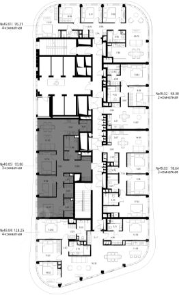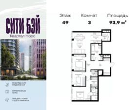 Продаётся 3-комнатная квартира общей площадью 93.86 м² с предчистовой отделкой в ЖК Сити Бэй, квартале Норс, на 49-м этаже 49 этажного дома.