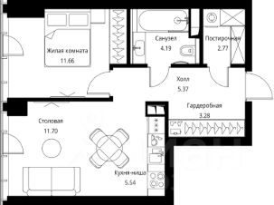 Продаётся 1-комнатная квартира общей площадью 44.51 м² с предчистовой отделкой в ЖК City Вау, квартале North, на 2-м этаже 49 этажного дома.