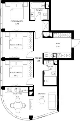 Продаётся 3-комнатная квартира общей площадью 80.89 м² с предчистовой отделкой в ЖК City Вау, квартале North, на 42-м этаже 49 этажного дома.