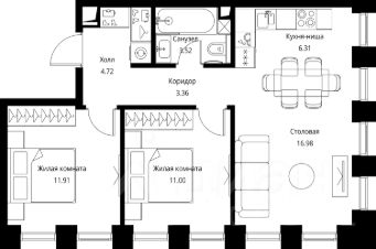 Продаётся 2-комнатная квартира общей площадью 57.80 м² с предчистовой отделкой в ЖК City Вау, квартале North, на 17-м этаже 26 этажного дома.