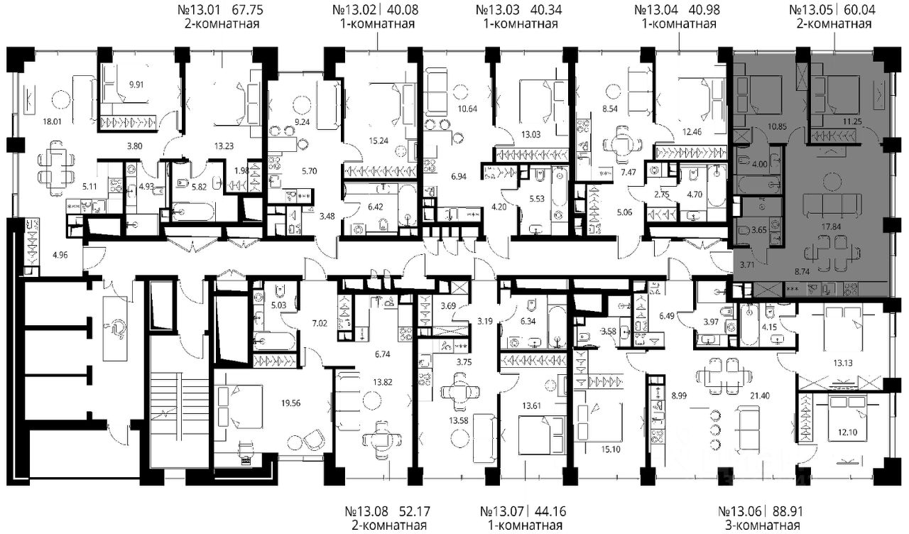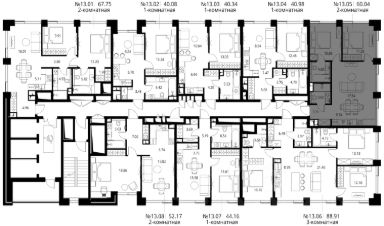 Продаётся 2-комнатная квартира общей площадью 60.04 м² с предчистовой отделкой в ЖК Сити Бэй, квартале Норс, на 13-м этаже 27 этажного дома.