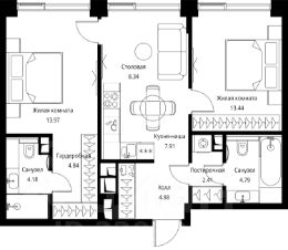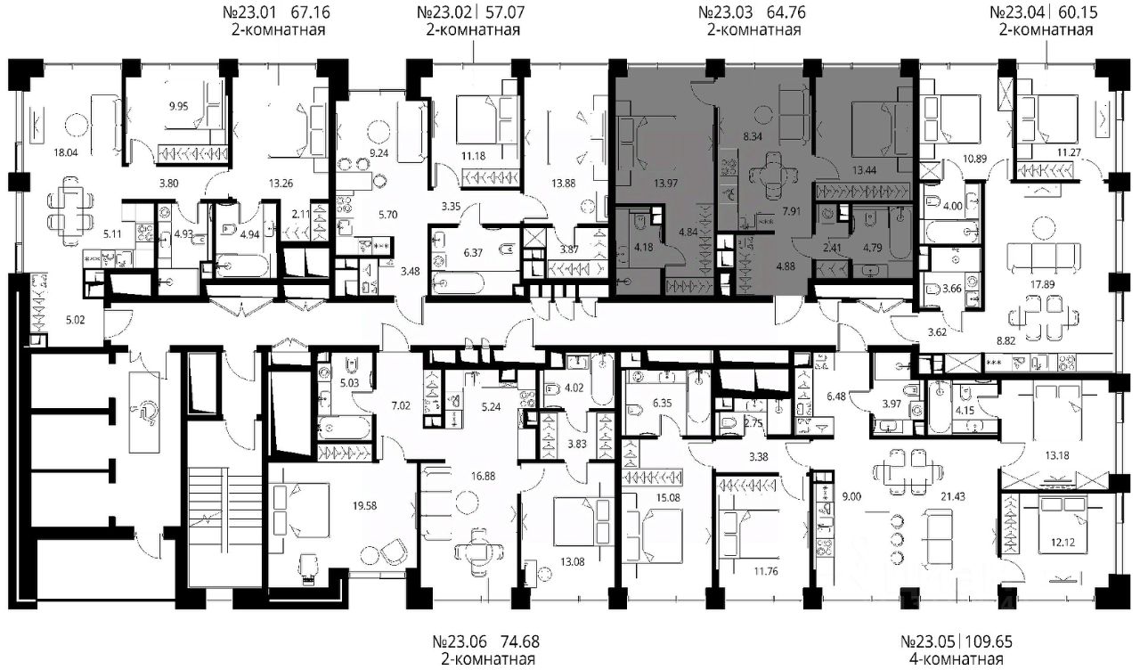 Продаётся 2-комнатная квартира общей площадью 64.76 м² с предчистовой отделкой в ЖК City Вау, квартале North, на 23-м этаже 27 этажного дома.