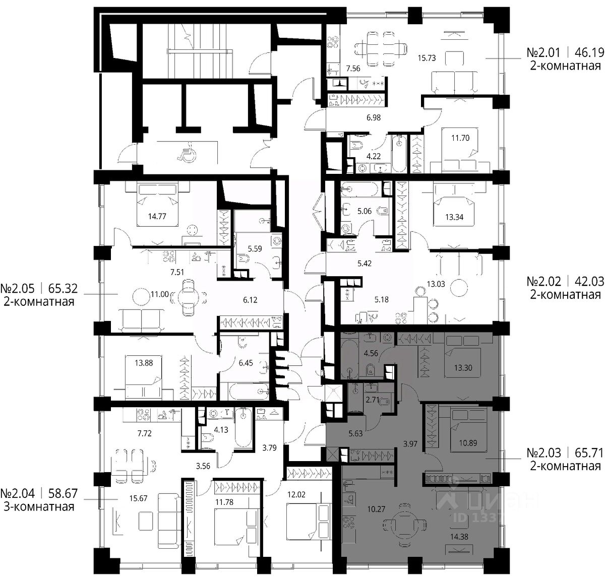 Продаётся 2-комнатная квартира общей площадью 65.71 м² с предчистовой отделкой в ЖК City Вау, квартале North, на 2-м этаже 24 этажного дома.