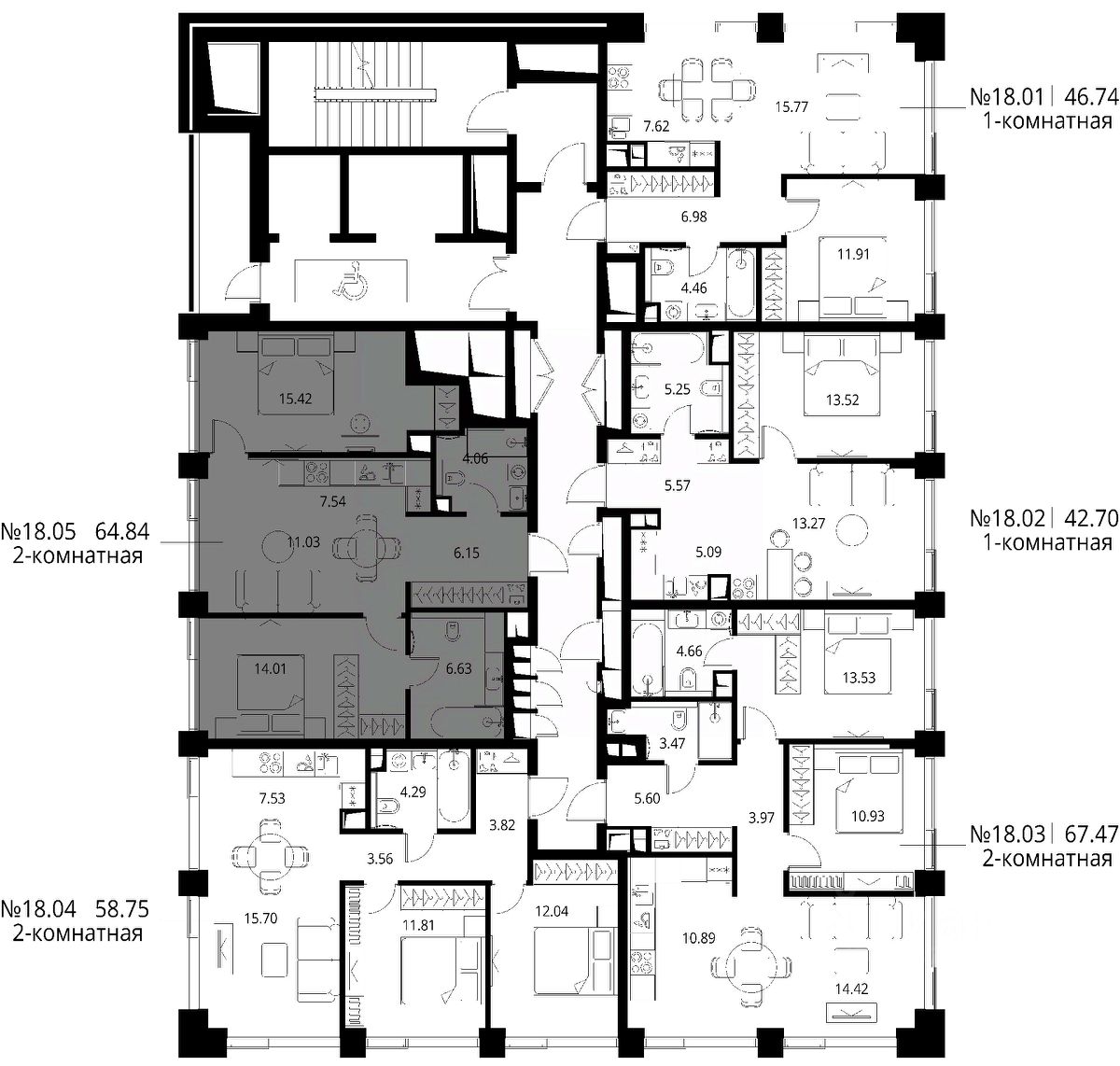 Продаётся 2-комнатная квартира общей площадью 64.84 м² с предчистовой отделкой в ЖК City Вау, квартале North, на 18-м этаже 24 этажного дома.
