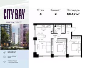 Продаётся 2-комнатная квартира общей площадью 58.49 м² с предчистовой отделкой в ЖК City Вау, квартале North, на 4-м этаже 24 этажного дома.