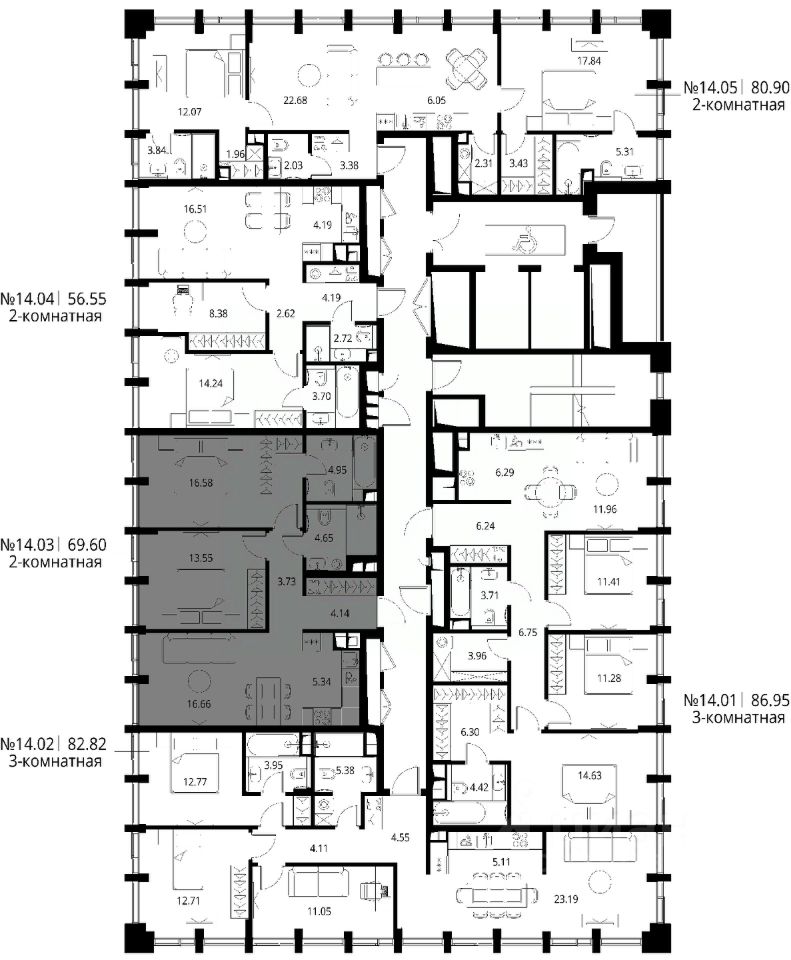 Продаётся 2-комнатная квартира общей площадью 69.60 м² с предчистовой отделкой в ЖК Сити Бэй, квартале Норс, на 14-м этаже 17 этажного дома.