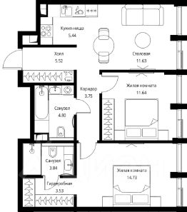 Продаётся 2-комнатная квартира общей площадью 64.88 м² с предчистовой отделкой в ЖК City Вау, квартале North, на 16-м этаже 17 этажного дома.