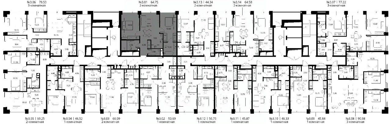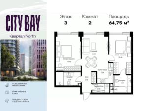 Продаётся 2-комнатная квартира общей площадью 64.75 м² с предчистовой отделкой в ЖК City Вау, квартале North, на 3-м этаже 10 этажного дома.
