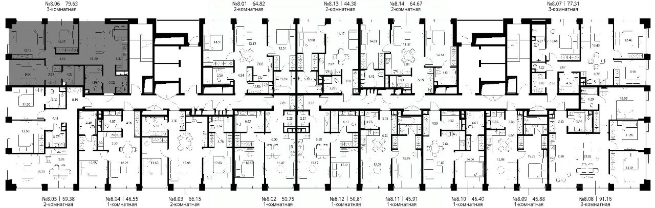 Продаётся 3-к квартира общей площадью 79.63 м² с предчистовой отделкой в ЖК City Вау, квартале North, на 8-м этаже 10 этажного дома.