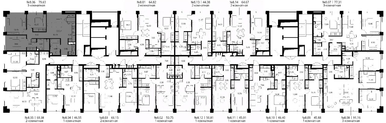 Продаётся 3-комнатная квартира общей площадью 79.63 м² с предчистовой отделкой в ЖК Сити Бэй, квартале Норс, на 8-м этаже 10 этажного дома.