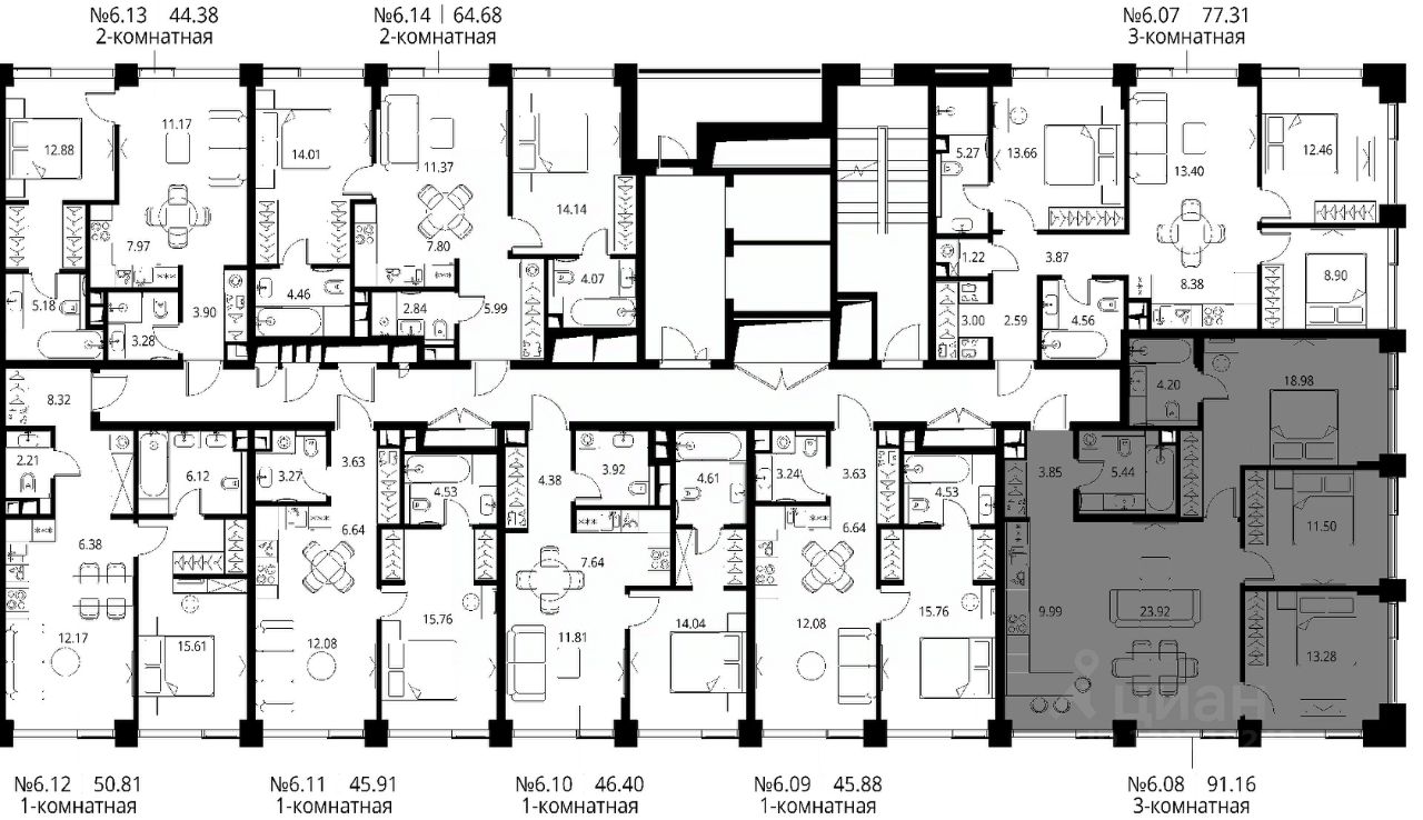 Продаётся 3-комнатная квартира общей площадью 91.16 м² с предчистовой отделкой в ЖК Сити Бэй, квартале Норс, на 6-м этаже 10 этажного дома.