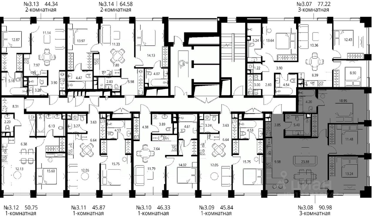 Продаётся 3-комнатная квартира общей площадью 90.98 м² с предчистовой отделкой в ЖК City Вау, квартале North, на 3-м этаже 10 этажного дома.
