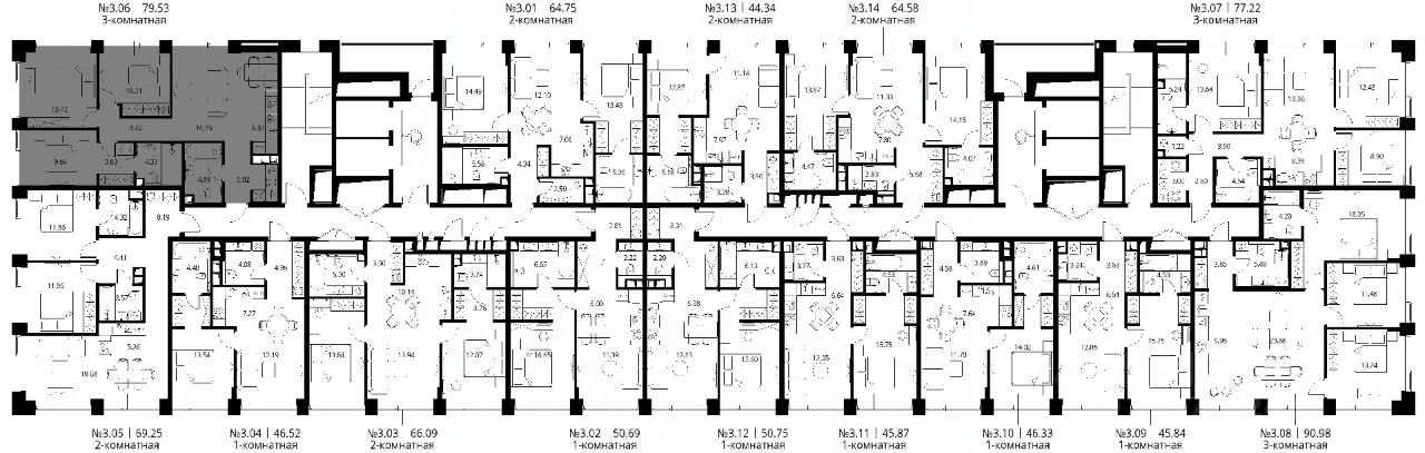 Продаётся 3-к квартира общей площадью 79.53 м² с предчистовой отделкой в ЖК City Вау, квартале North, на 3-м этаже 10 этажного дома.