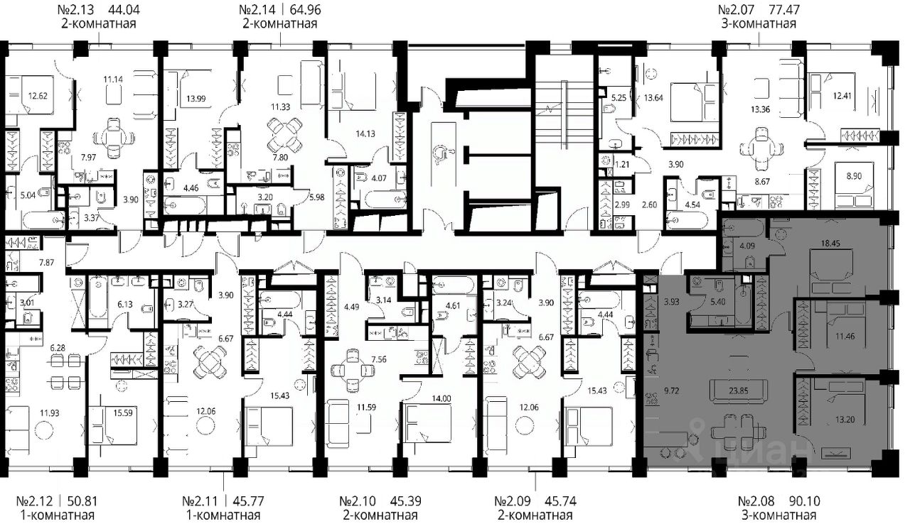 Продаётся 3-комнатная квартира общей площадью 90.10 м² с предчистовой отделкой в ЖК Сити Бэй, квартале Норс, на 2-м этаже 10 этажного дома.