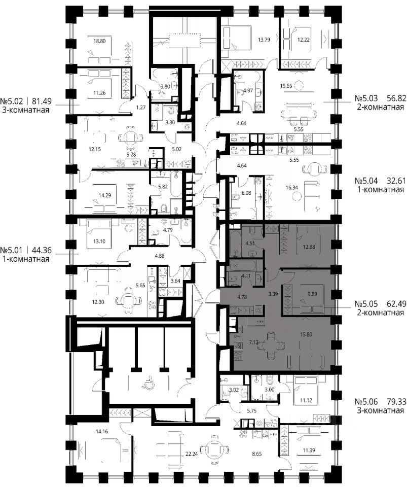 Продаётся 2-комнатная квартира общей площадью 62.49 м² с предчистовой отделкой в ЖК Сити Бэй, квартале Норс, на 5-м этаже 27 этажного дома.