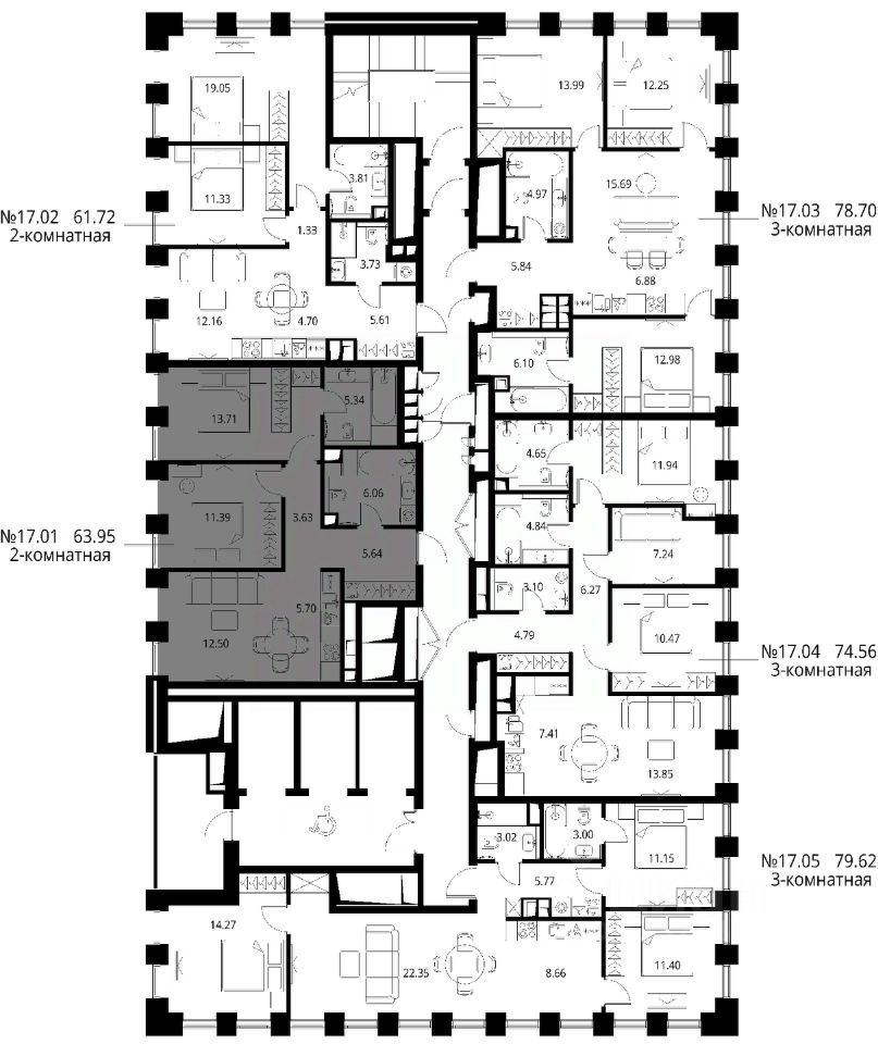 Продаётся 2-к квартира общей площадью 63.95 м² с предчистовой отделкой в ЖК City Вау, квартале North, на 17-м этаже 27 этажного дома.